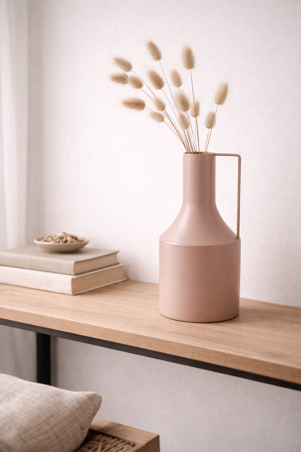Μεταλλικό διακοσμητικό αντικείμενο με καθαρή, σύγχρονη φόρμα και ματ φινίρισμα, σχεδιασμένο να λειτουργεί ως διακριτικό statement σε minimal χώρους. Η λιτή του γραμμή και η ήρεμη παρουσία του το καθιστούν ιδανικό για συνθέσεις που βασίζονται στην ισορροπία και την απλότητα.