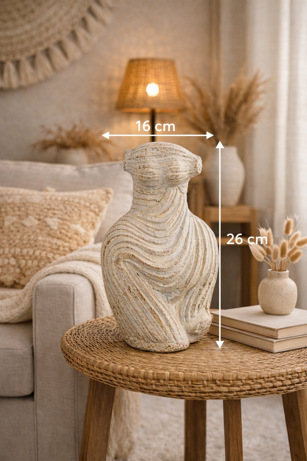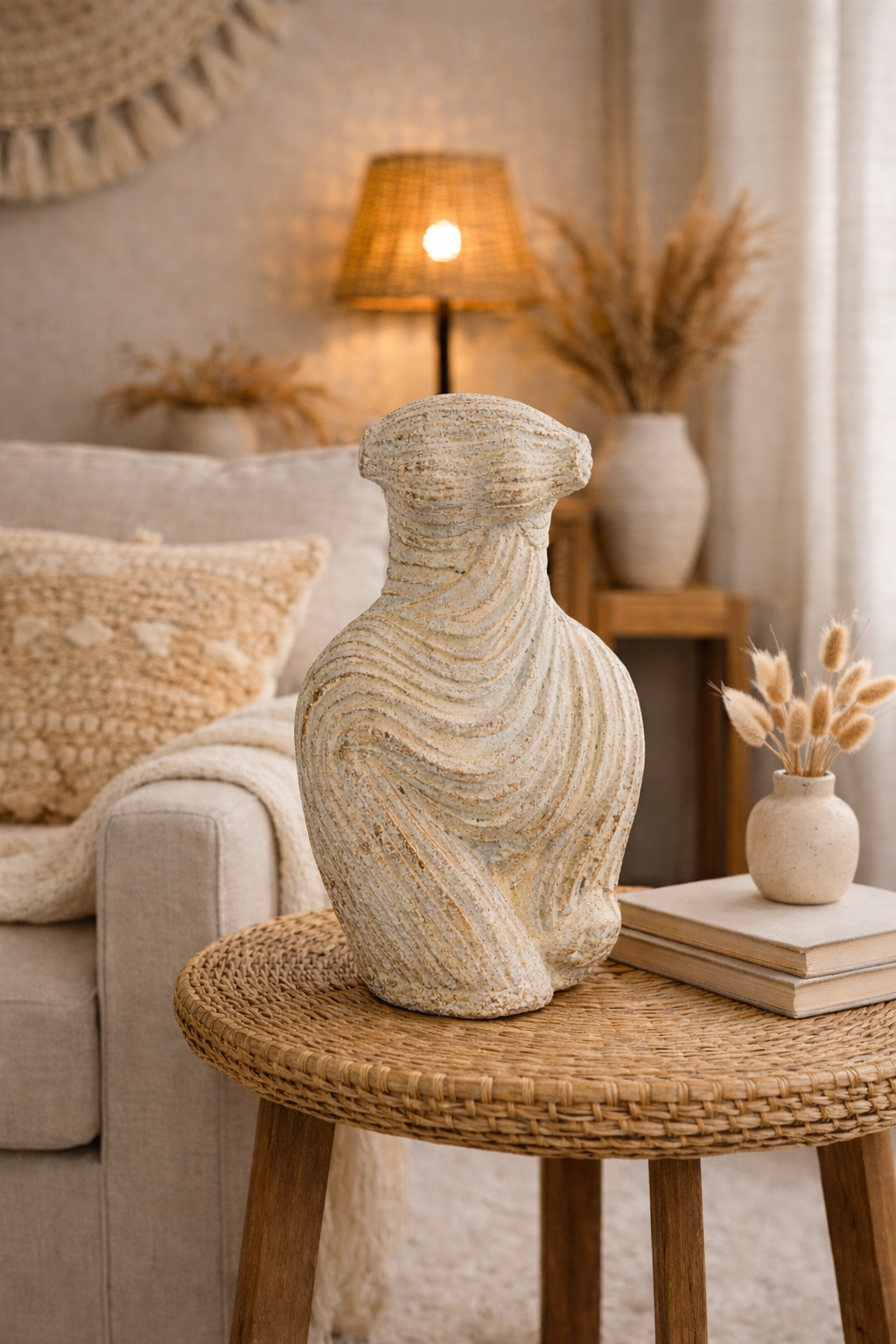 Διακοσμητικό αντικείμενο με γλυπτική φόρμα και απαλή ανάγλυφη mineral υφή, σχεδιασμένο να προσθέτει ζεστασιά και χαρακτήρα σε boho χώρους. Η φυσική του απόχρωση και η ήρεμη παρουσία του δένουν αρμονικά με υφές, γήινες παλέτες και φωτεινά, χαλαρά περιβάλλοντα.